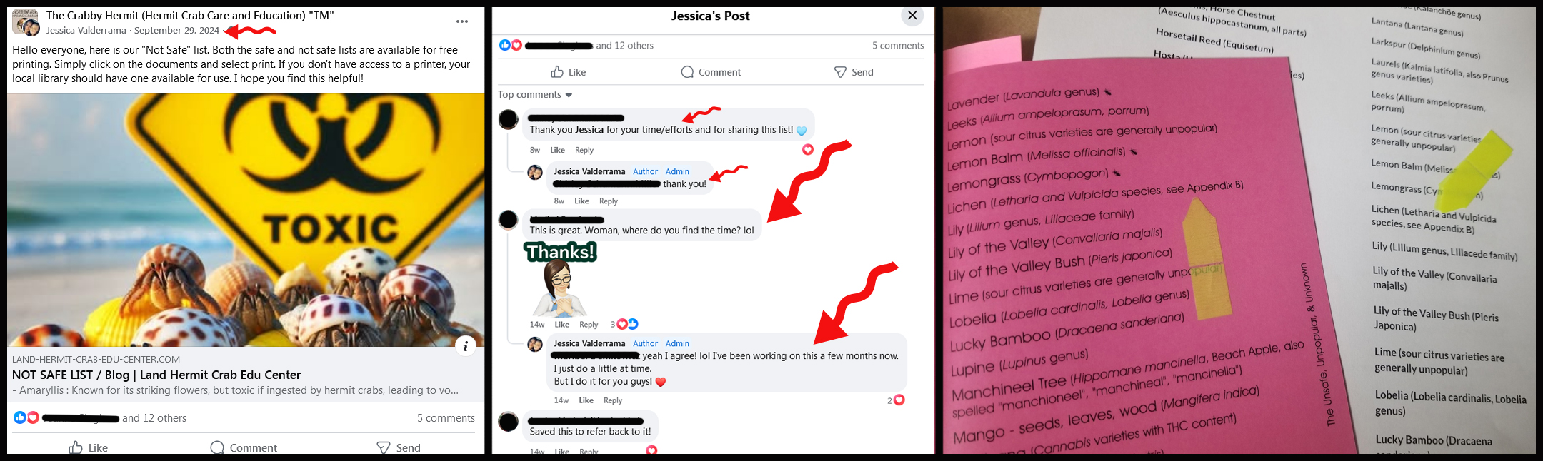 The printed PDFs as shown in the subsequent photos were obtained from the Files of The Crabby Hermit (Hermit Crab Care and Education) “TM” Group prior to their deletion as requested by both Stacy Griffith and Stacey May on January 11, 2025, and from landhermitcrabeducenter.com prior to the suspension of its domain name and website on January 12, 2025.